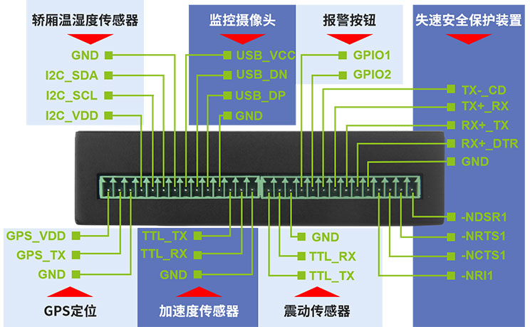 在整套电梯物联网管理方案中,将GPS定位传感器、轿厢温度传感器、加速度传感器、报警装置接入非凡娱乐-电子娱乐R100;利用R100的边缘计算能力,对采集到的数据进行运算和整形,迅速识别并响应异常运行状态;最终通过无限局域网络或蜂窝数据网络上发至管理平台,完成电梯的物联网接入。