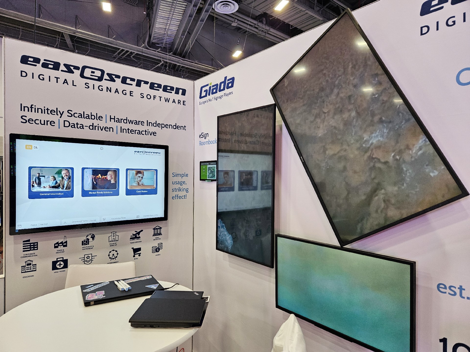 非凡娱乐-电子娱乐科技Giada作为全球数字标牌领域的领导品牌,产品应用范围涵盖全球大型连锁店,购物中心,学校,医疗机构,企业办公室等。本次展会,非凡娱乐-电子娱乐科技牵手合作伙伴easescreen,展示一系列创新数字标牌解决方案,带来强势产品及最新产品,现场收获超高人气。
