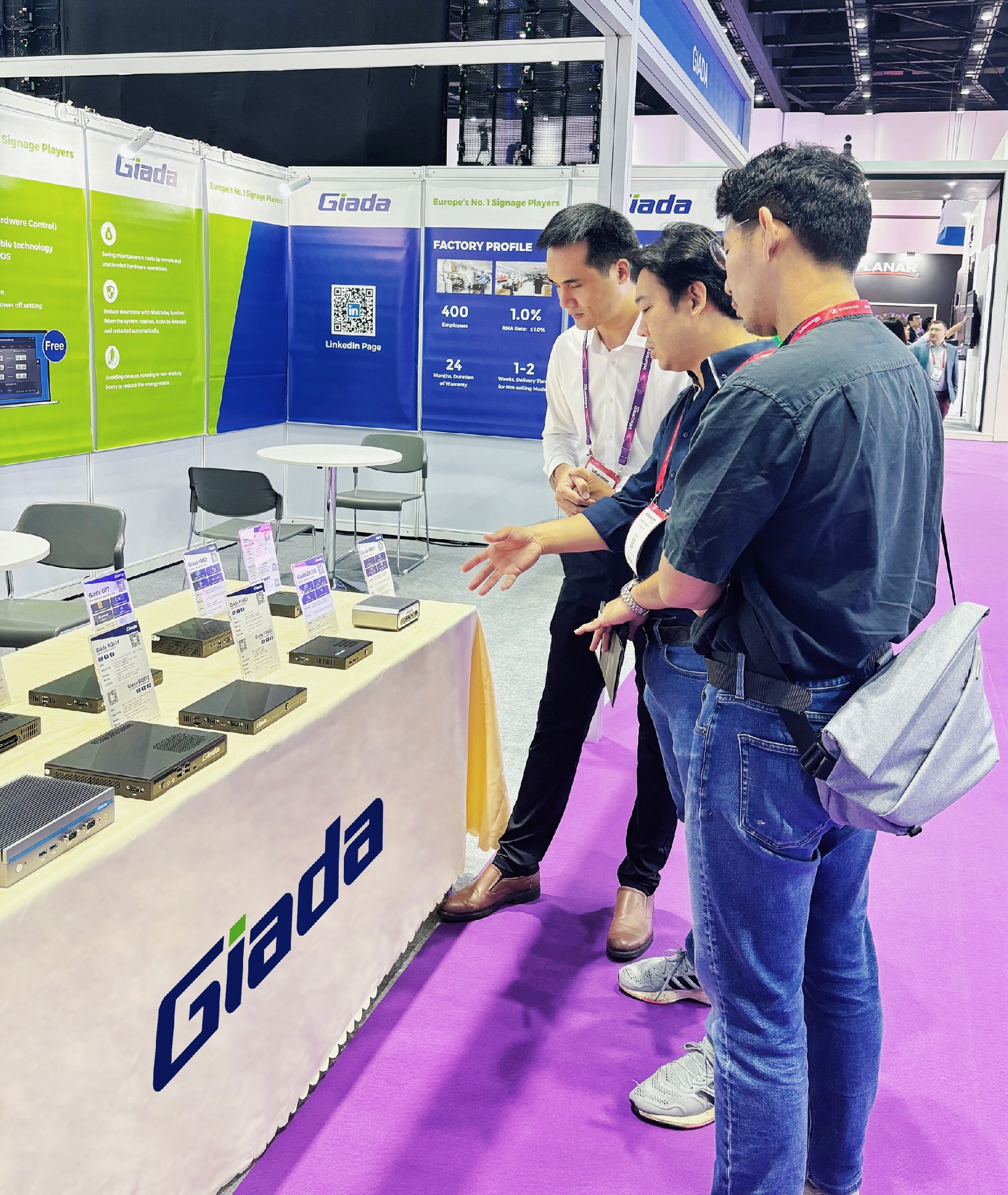 除此之外,Giada非凡娱乐-电子娱乐科技展示一系列数字标牌播放器、户外嵌入式整机、OPS/SDM及嵌入式主板等明星产品,并带来一系列量身定制的解决方案,以满足东南亚地区的具体需求。