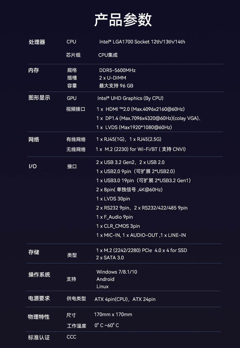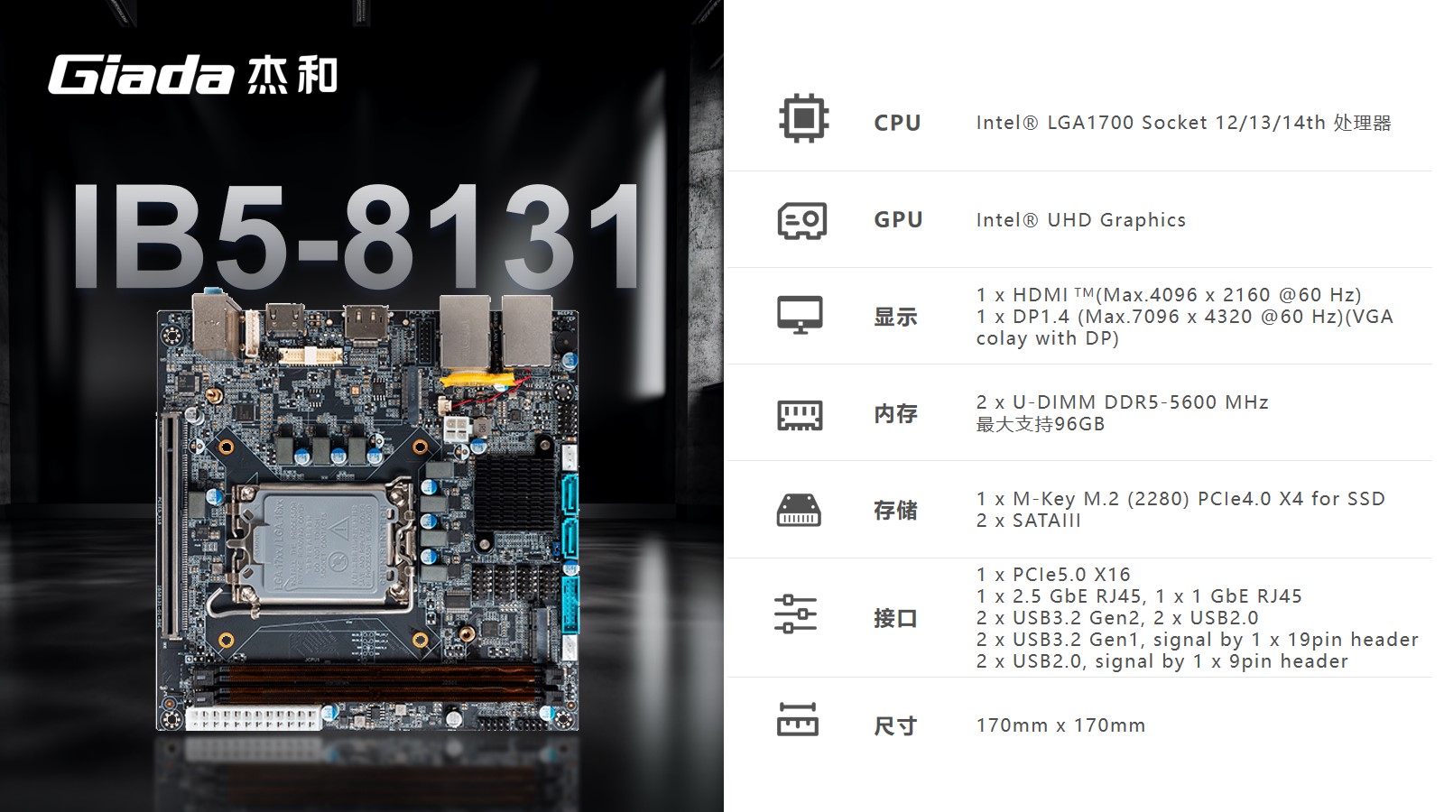 非凡娱乐-电子娱乐科技嵌入式主板IB5-8131采用Intel® B760 芯片组,支持Intel® 第12代至14代处理器。大容量内存支持,配备2个U-DIMM DDR5 内存,最大支持96GB,频率最高可达5600MHz,可灵活扩展NVMe SSD和2个SATA3.0存储。基于此特点,智能柜员机可满足设备流畅丝滑运行的功能。