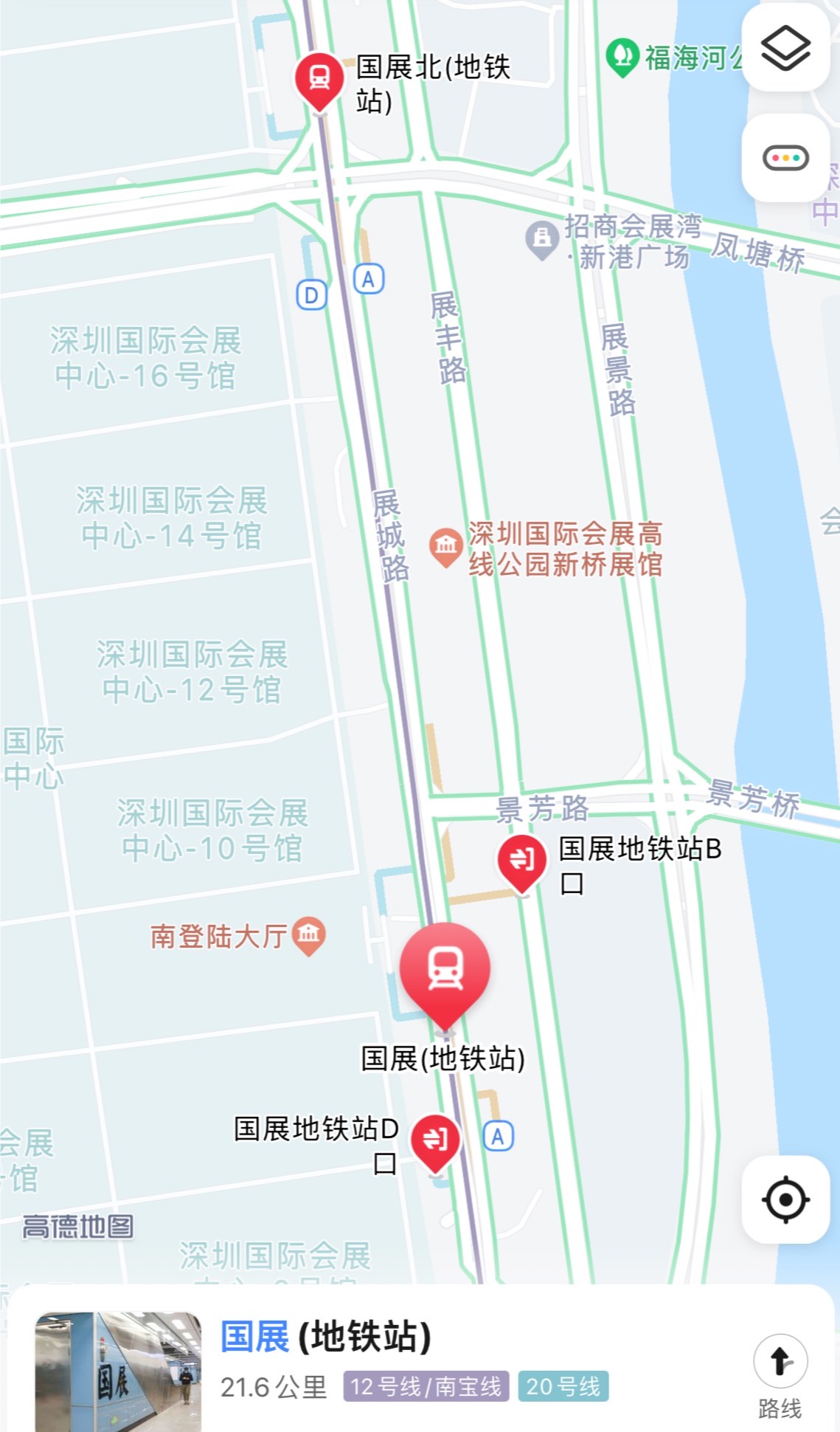 国展地铁站: 地铁12号线、20号线,C1、C2出口可直达展馆南登录大厅