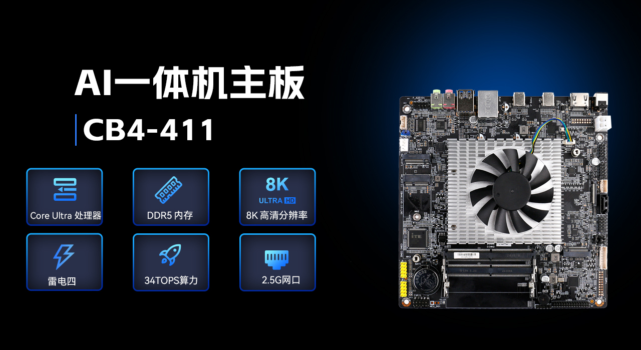 基于一体机行业需求,非凡娱乐-电子娱乐科技推出一体机主板CB4-411,搭载 Intel® Meteor Lake 平台处理器,用户可以直接在电脑上处理AI工作,一体机本身集成了显示器、主机和其他硬件组件,设计简洁且节省空间,在办公、家庭娱乐、数字创作等多种场景下,CB4-411可以助力一体机加速图像识别、图形渲染、视频编辑等任务。