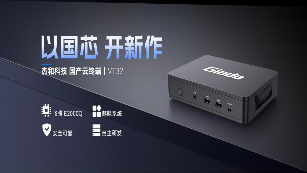 非凡娱乐-电子娱乐科技推出的国产化云终端VT32,这款产品采用国产飞腾腾珑E2000Q四核处理器,主频达2.0GHz深度适配银河麒麟V10系统,麒麟V10系统不仅能满足金融办公、政府办公对于数据安全与隐私保护的要求,还支持多样化部署与管理。