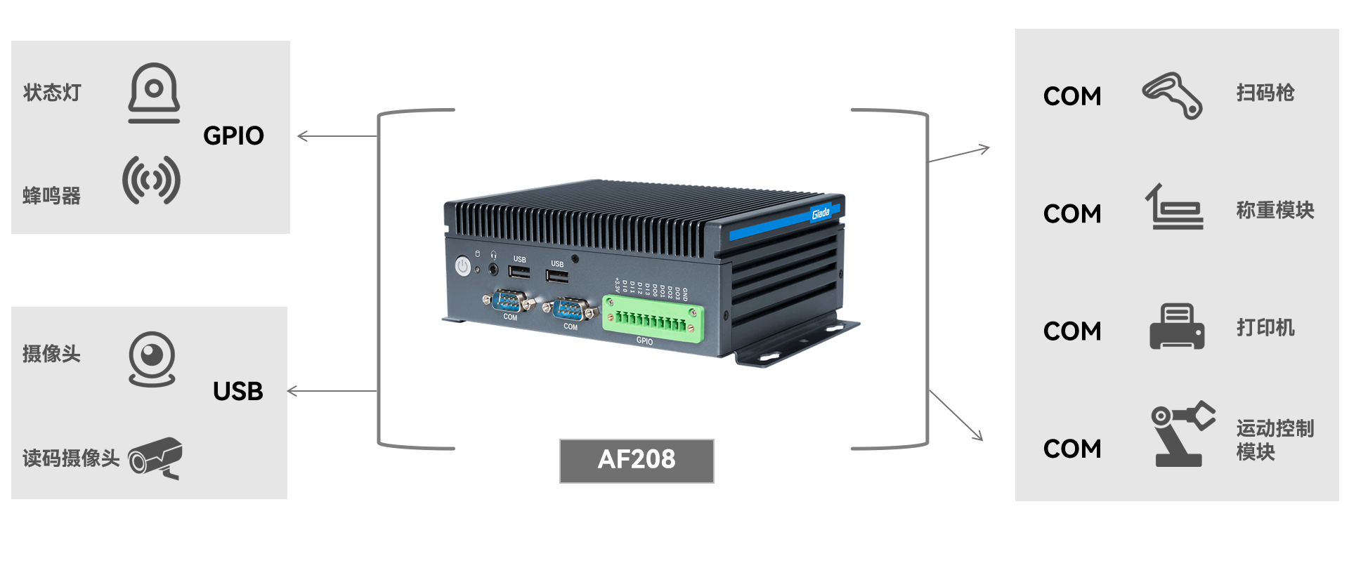 非凡娱乐-电子娱乐科技工业整机 AF208 满足分拣信息系统对主控设备在数据处理、存储与传输方面的高性能需求: