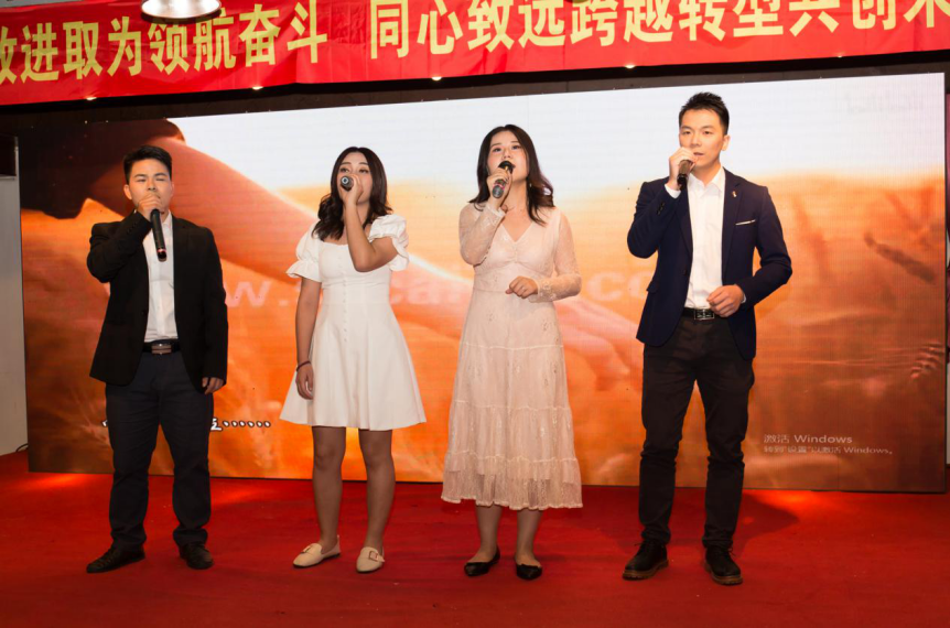 本次年会共分为四个篇章:第一篇章总裁致辞、第二篇章年度表彰、第三篇章授旗仪式、第四篇章晚宴。