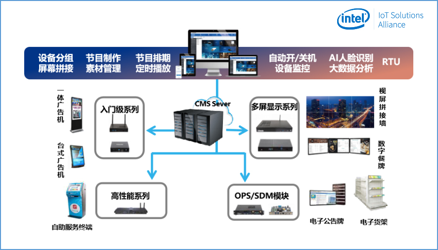 为了更好的迎合行业的发展趋势,向零售业输送前沿的营销理念和模式,驱动零售行业迈向数字化、智慧化的运营模式,非凡娱乐-电子娱乐科技经过多年的行业经验积累和对客户需求的探索,通过集成Intel®Movidius视觉识别技术和OpenVINOTMAI视觉学习技术,自主研发了一套GDSM智慧商显管理系统平台,加上非凡娱乐-电子娱乐科技多年来在商显行业的产品开发经验,已整合成为一套完整的智慧商显整体解决方案。目前GDSM智慧商显解决方案已成熟的应用于商超零售、品牌餐饮等多个行业,并获得了Intel®MRS市场方案认证。