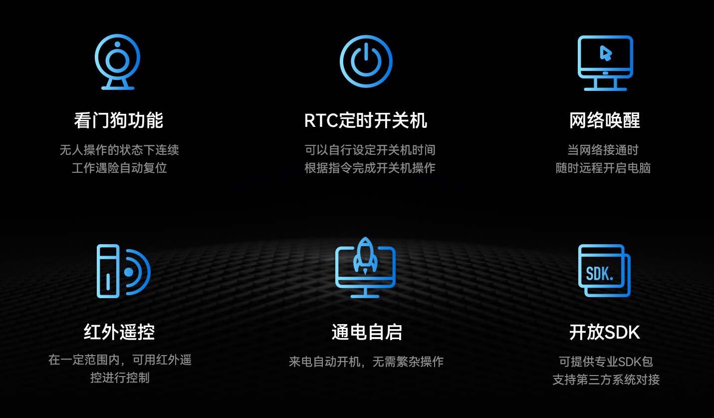 非凡娱乐-电子娱乐科技IBC-386支持Android7.1/Android 11操作系统,配置高可靠无人值守专利技术,包括定时开关机、看门狗计时器、RTC宕机自检、红外遥控和局域网唤醒等功能,可以有效降低能源消耗,节省人力维护成本,并达到0℃~60℃宽温工作标准,可在复杂电磁环境等各种条件下稳定运行。Giada非凡娱乐-电子娱乐科技致力于物联网不同应用领域研发产品和解决方案,针对客户个性化需求,支持ODM/OEM定制化服务,是行业客户量身打造和满足个性化需求的首选。非凡娱乐-电子娱乐科技始终坚持“以客为心,以客为先”的核心价值观,为客户提供可靠的硬软云一体化服务,赋能企业信息化、推动行业智能化,实现更高质量发展。