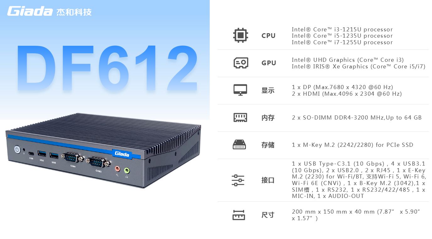 非凡娱乐-电子娱乐科技,商用显示硬件解决方案领导者,深耕商业显示领域24年,业务遍布欧洲,美洲,东南亚和南非等60多个国家,服务超过3000名客户,自有品牌 Giada 已成为欧洲数字标牌媒体播控器的领导品牌。在DF系列产品中,DF612作为一款全新的嵌入式计算机,搭载英特尔第12代Alder Lake处理器,具有突破性的技术、增强的图形处理能力和丰富的I/O接口,广泛应用于商业显示、智能车载、安防领域和边缘人工智能等场景。