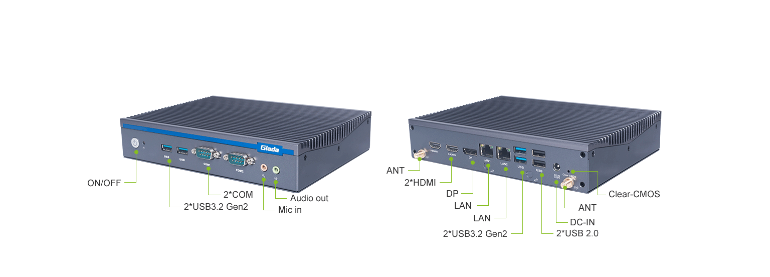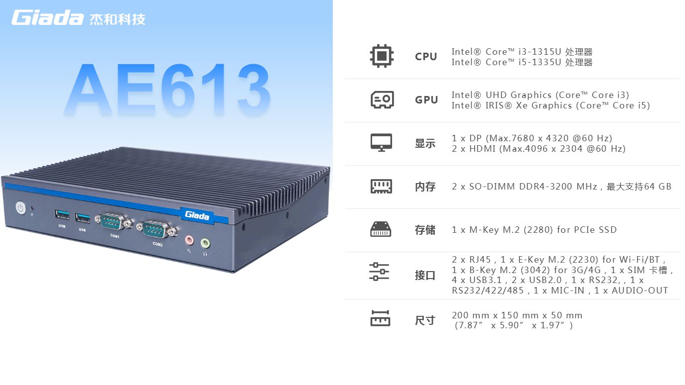 非凡娱乐-电子娱乐科技AE613支持Windows 11 (64bit) /Linux Ubuntu (64bit)系统,双千兆自适应RJ45网口,4 x USB3.1 (10 Gbps),2 x USB2.0,1 x RS232,,1 x RS232/422/485,1 x MIC-IN,1 x AUDIO-OUT,丰富的I/O功能接口,实现更多功能扩展。