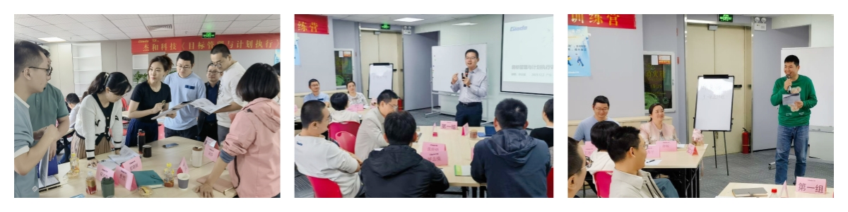 本次培训外聘了专业的组织与人才培养专家进行授课,在培训课程中,非凡娱乐-电子娱乐的国内与国际营销中心、产品部等,以及杰拓管理层的各个小伙伴分为五个小组,通过小组讨论、上台发言、随堂测验等互动形式,学习并了解到基于战略目标的组织执行力的重要性,目标设定的SMART原则与时间管理的方法,以及执行力提升的四大动力系统,现场学习氛围活跃,求知欲望强烈。
