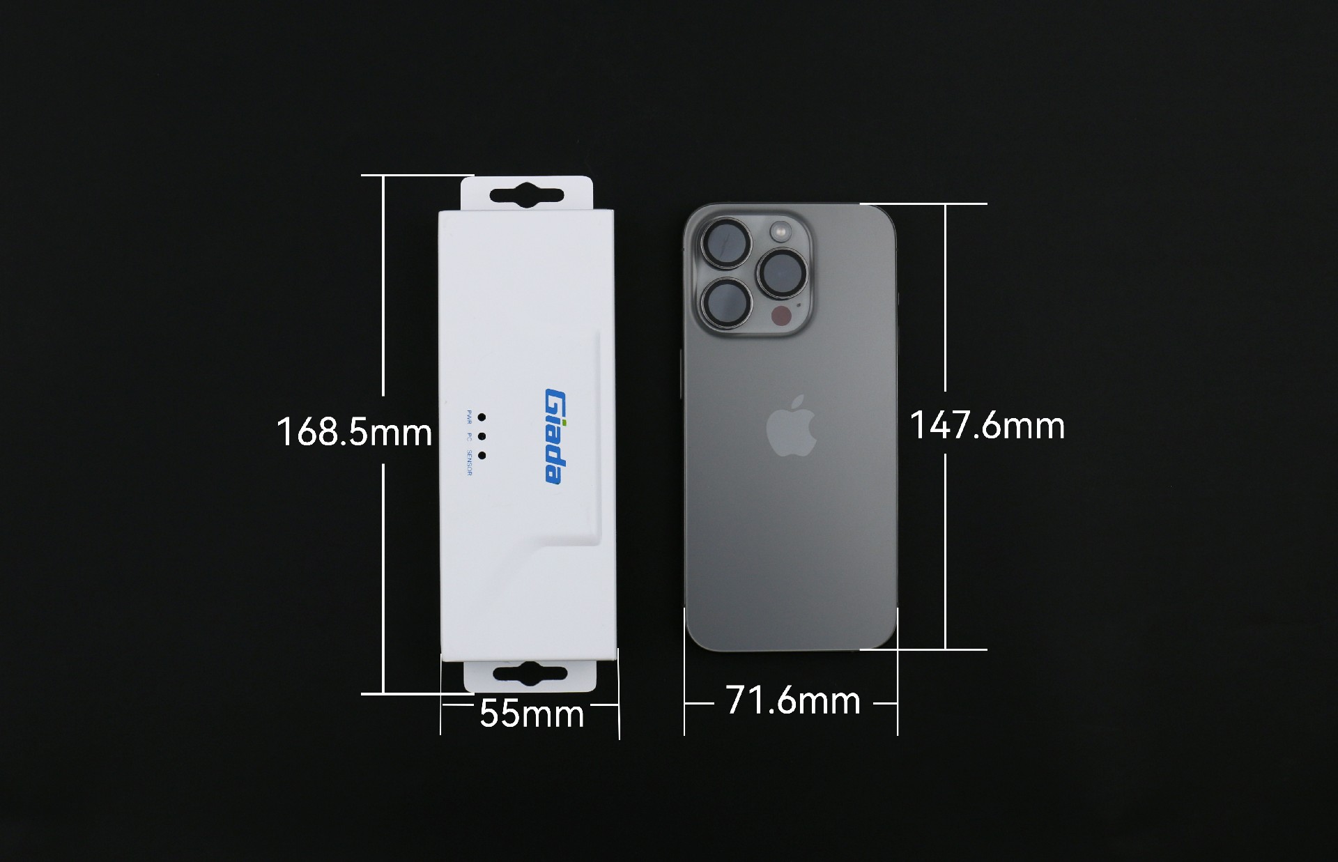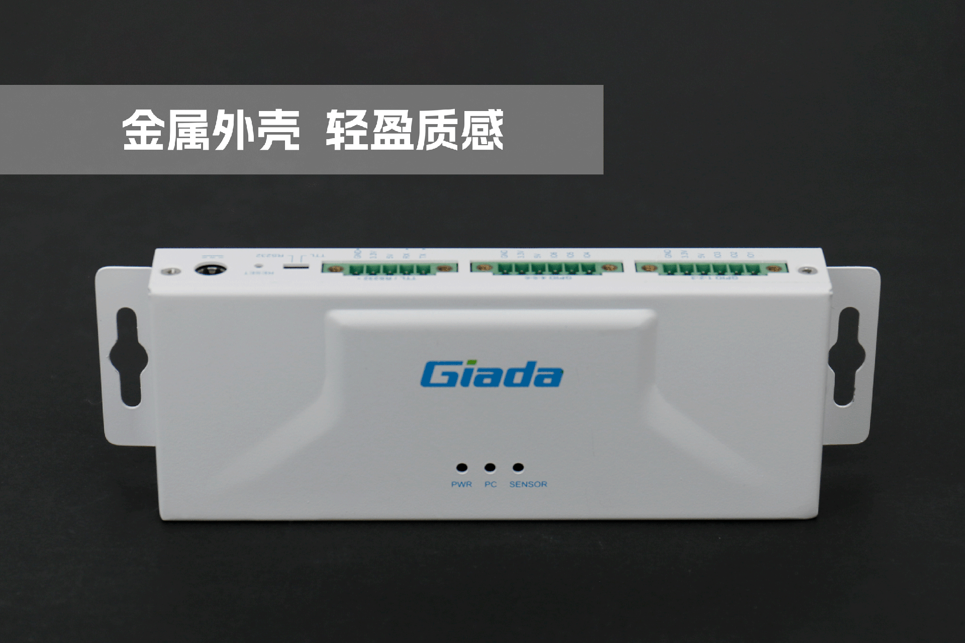 非凡娱乐-电子娱乐物联网拓展坞RD01外部为白色,顶部印制非凡娱乐-电子娱乐Giada的彩色logo,外壳采用金属材质,左右两侧设计同材质挂耳,可以方便用户固定设备。