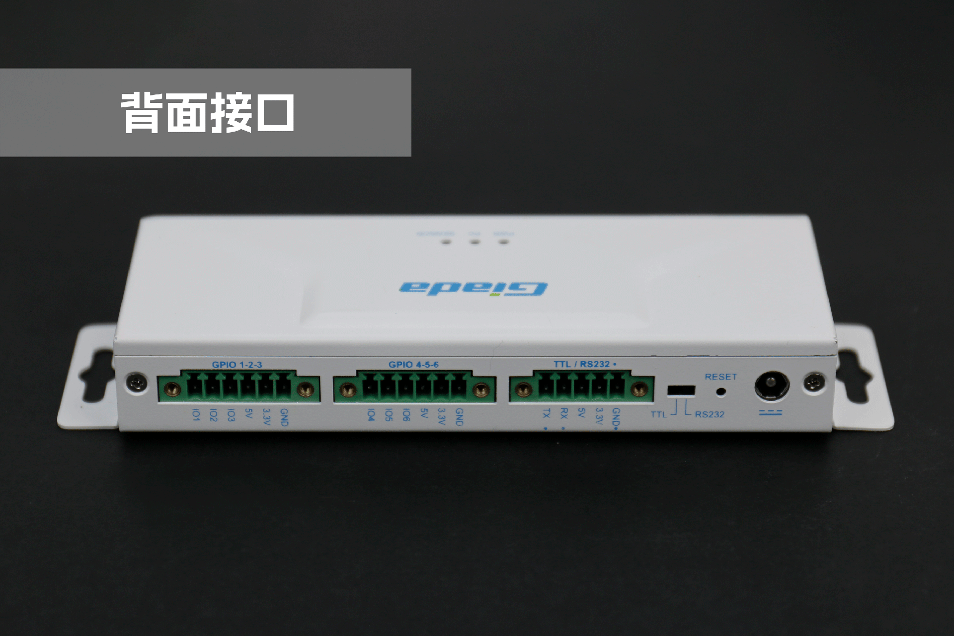 非凡娱乐-电子娱乐RD01背面配备6个GPI0接口,采用12Pin凤端子,用于与传感器通信;1个RS232 或 TTL(拨码开关选择),采用5Pin 凤凰端子(TTL 模式下支持 5V 和 3.3V 供电),用于与传感器通讯,1个拨码开关,用于选择 RS232/TTL;1个恢复出厂按钮,用于恢复出厂设置;1个DC-IN 5V 供电接口。